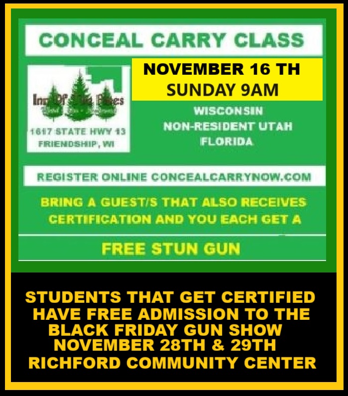 - THE WISCONSIN CERTIFICATION IS FREE TO VETERANS WHEN YOU OBTAIN THE NON-RESIDENT UTAH OR FLORIDA OR IF YOU BRING A GUEST THAT ALSO RECEIVES CERTIFICATION.