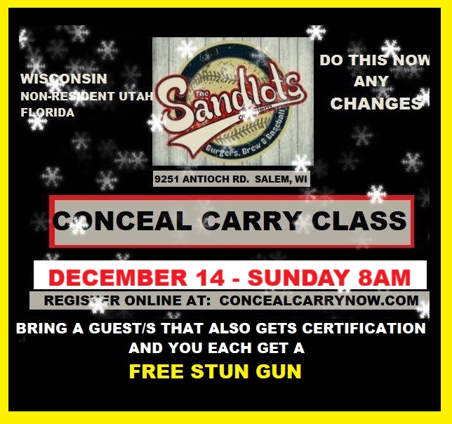 YOU WILL RECEIVE AN EMAIL REGARDING ANY TIME CHANGES OR A CANCELLATION DUE TO LACK OF ATTENDANCE. WE ENCOURAGE YOU TO PROMOTE THE CLASS TO ENABLE A MINIMUM OF AT LEAST TEN STUDENTS AND THAT YOU GET THE FREE STUN GUN. PLEASE CHECK YOUR SPAM