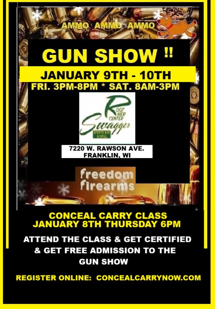 VENDORS INTERESTED IN TABLES = CALL AMANDA 262-888-2887 EMAIL = FREEDOMFIREARMSNOW@YAHOO.COM CONCEALCARRYNOW@GMAIL.COM