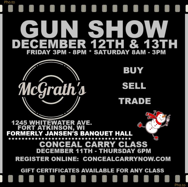 Admission: $8.00 ALL VETERANS ARE FREE Hours: DECEMBER 19TH FRIDAY 3PM - 8PM DECEMBER 20TH SATURDAY 8AM - 3PM VENDORS INTERESTED IN TABLES = CALL AMANDA 262-888-2887 EMAIL = FREEDOMFIREARMSNOW@YAHOO.COM…